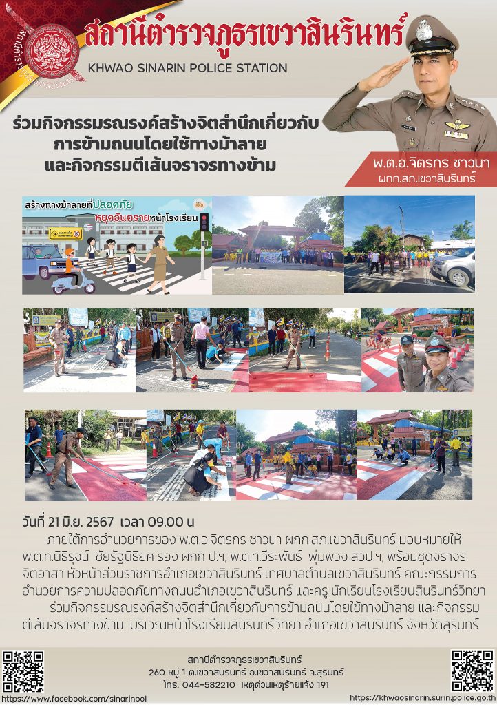 กิจกรรมรณรงค์สร้างจิตสำนึกการข้ามถนนโดยใช้ทางม้าลาย 21 มิถุนายน 2024 โดย admin / -ข่าวประชาสัมพันธ์,ข่าวภารกิจผู้บังคับบัญชา