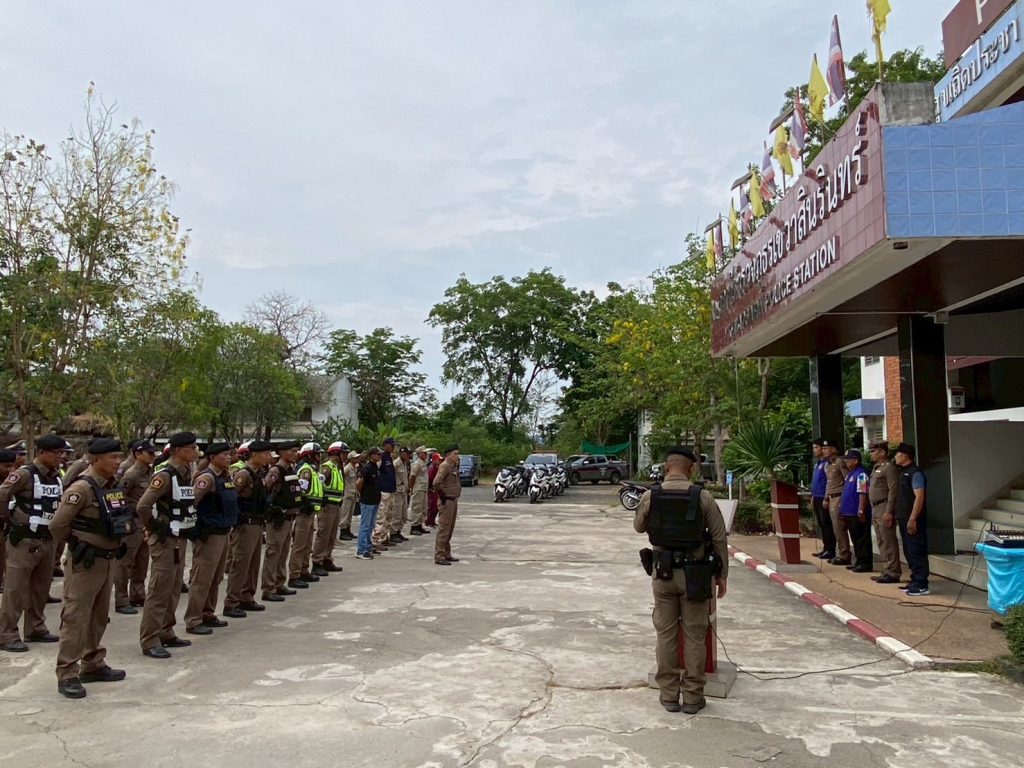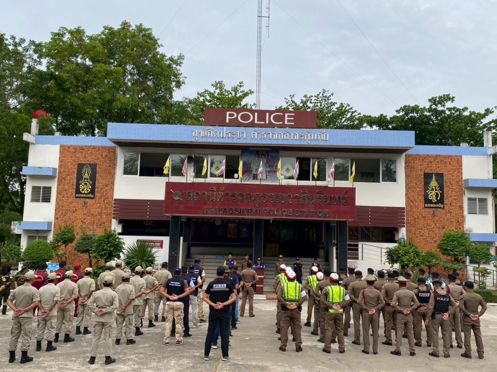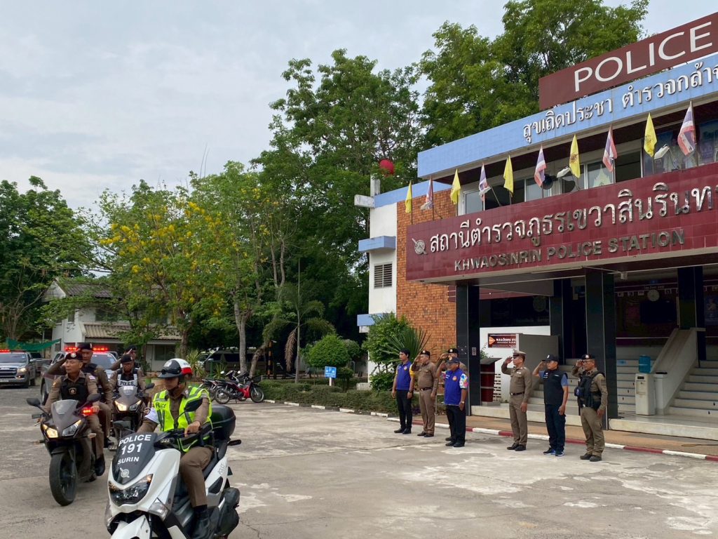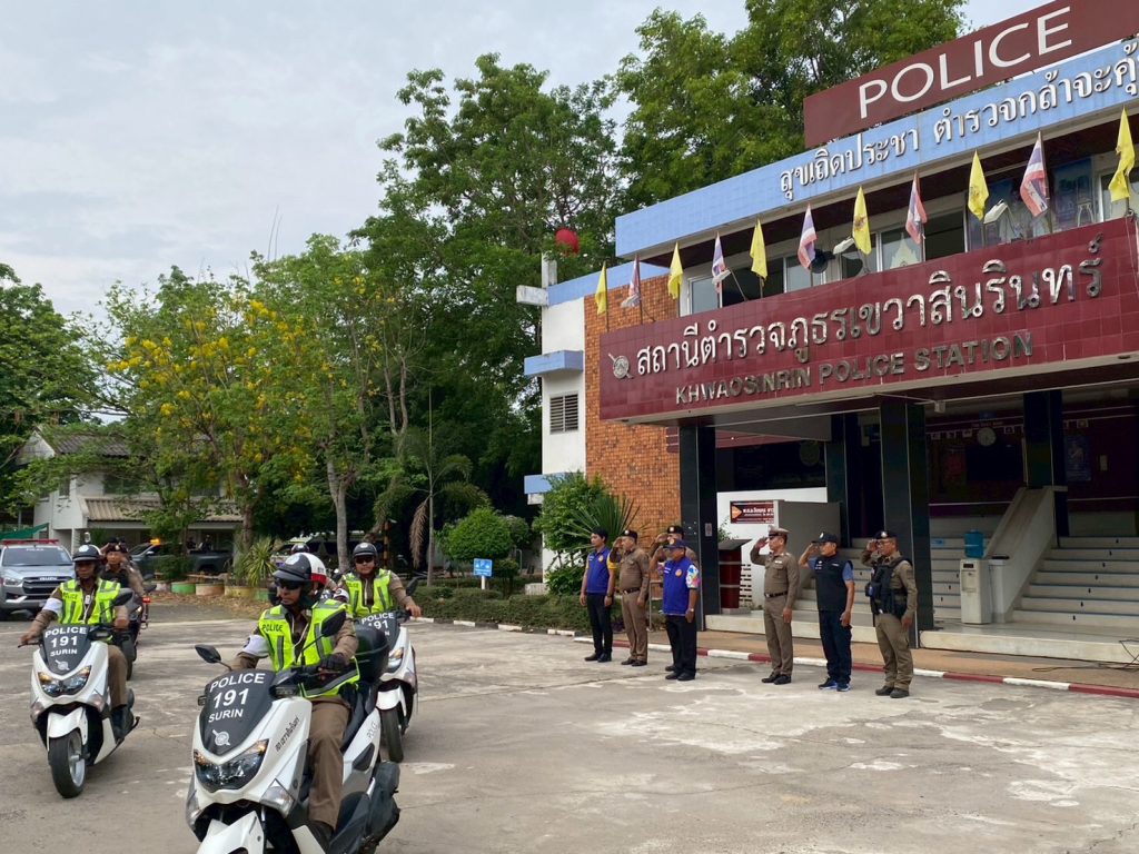 พ.ต.อ.จิตรกร ชาวนา ผกก.สภ.เขวาสินรินทร์ พ.ต.ท.วรกร พชระพลโยธิน รอง.ผกก.ป. ฯ พ.ต.ท.สรวิศ สำราญรมย์ รอง ผกก.สส.ฯ พ.ต.ท.วีระพันธ์ พุ่มพวง สวป. ฯ พ.ต.ท.ไพรัช บัวสาย สว.อก.ฯ พ.ต.ต.สันต์ เชื่อมั่น สว.สส.ฯ พร้อมด้วยข้าราชการตำรวจ สภ.เขวาสินรินทร์ บูรณาการร่วมกับฝ่ายปกครอง อ.เขวาสินรินทร์,จนท.กู้ภัยเขวาสินรินทร์, จนท.เทศบาลเขวาสินรินทร์ จนท.อปพร. ร่วมปล่อยแถวระดมกวาดล้างอาชญากรรมการกระทำผิดกฎหมายต่างๆ ในช่วงเทศกาลสงกรานต์ 2568 ณ ลานด้านหน้าที่ทำการสถานีตำรวจ สภ.เขวาสินรินทร์ โดยมีนายธนันญ์บุณย์ เพชรประไพ นายอำเภอเขวาสินรินทร์ เป็นประธานในการปล่อยแถวครั้งนี้