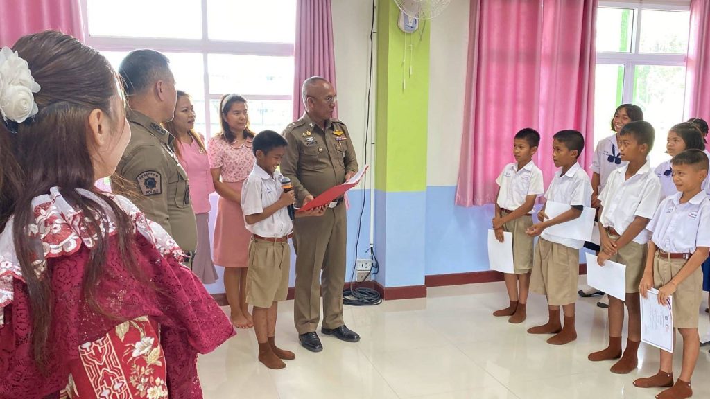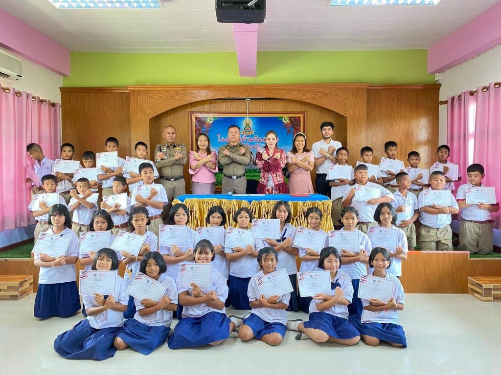 วันที่ 14 มี.ค. 68 เวลา 13.30 น. พ.ต.อ.จิตรกร ชาวนา ผกก.สภ.เขวาสินรินทร์ มอบหมายให้ พ.ต.ท.ไพรัช บัวสาย สว.อก.สภ.เขวาสินรินทร์ พร้อมด้วย ร.ต.ท.สุพจน์ เมื่อประโคน รอง สว.(ป.)สภ.เขวาสินรินทร์ ครูตำรวจแดร์ ร่วมพิธีปิด และมอบใบประกาศนียบัตรผู้จบหลักสูตรโครงการ การศึกษาเพื่อต่อต้านการใช้ยาเสพติดในเด็กนักเรียน (D.A.R.E.)ให้กับนักเรียนโรงเรียนบ้านกันเตรียง ต.บ้านแร่ อ.เขวาสินรินทร์ จ.สุรินทร์