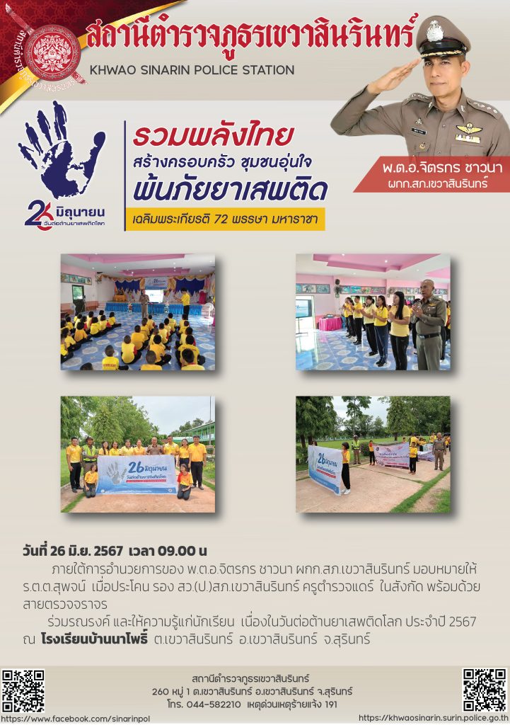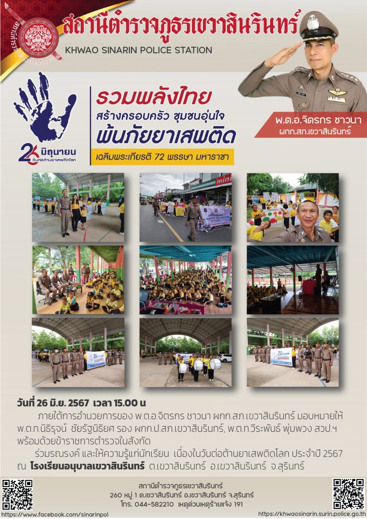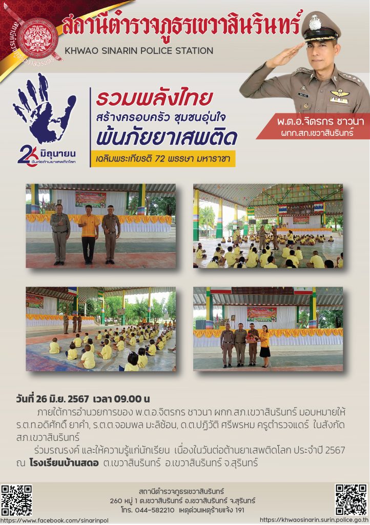 ร่วมกิจกรรมวันต่อต้านยาเสพติดโลก 28 มิถุนายน 2024 โดย admin / -ข่าวประชาสัมพันธ์,ข่าวภารกิจผู้บังคับบัญชา
