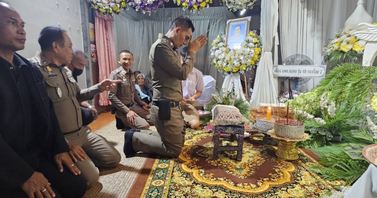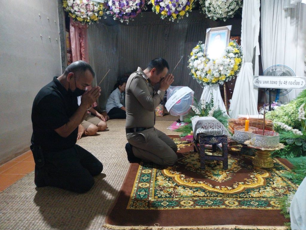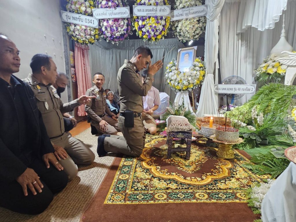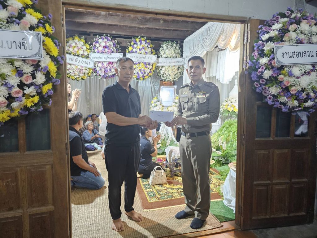 วันที่ 19 ม.ค.67 เวลา 19.00 น. พ.ต.อ.จิตรกร ชาวนา ผกก.สภ.เขวาสินรินทร์, พ.ต.ท.นิธิรุจน์ ชัยรัฐนิธิยศ รอง ผกก.ป.สภ.เขวาสินรินทร์, พ.ต.ท.ธานินทร์ สุขศิลป์ สว.สส.สภ.เขวาสินรินทร์, พ.ต.ท.วีระพันธ์ พุ่มพวง สวป.สภ.เขวาสินรินทร์ พร้อมข้าราชการตำรวจ สภ.เขวาสินรินทร์ ร่วมเป็นเจ้าภาพสวดพระอภิธรรมศพ คุณแม่สำลี บุญรับ มารดาของ ด.ต.สมโภชน์ บุญรับ ณ บ้านเลขที่ 42 ม.8 บ้านกระทม ตำบลนาบัว อำเภอเมืองสุรินทร์ จังหวัดสุรินทร์