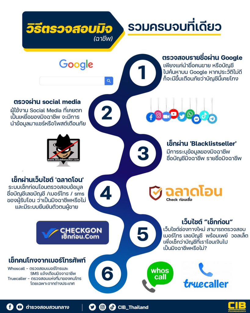 มีการระบุข้อมูลของมิจฉาชีพอย่างละเอียด ชื่อบัญชีมิจฉาชีพ รายชื่อมิจฉาชีพ รวมถึงสามารถเช็กเลขบัญชีของมิจฉาชีพได้ด้วย ตั้งแต่ขั้นตอนซื้อขายจนไปถึงขั้นตอนโอนเงิน https://www.blacklistseller.com/.