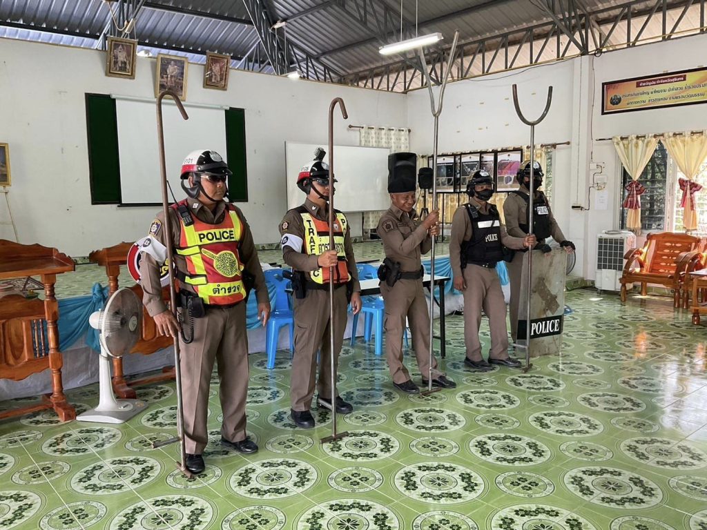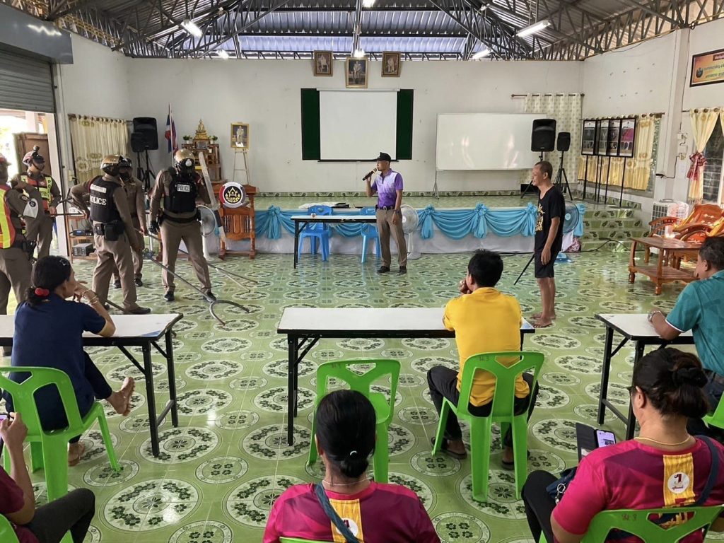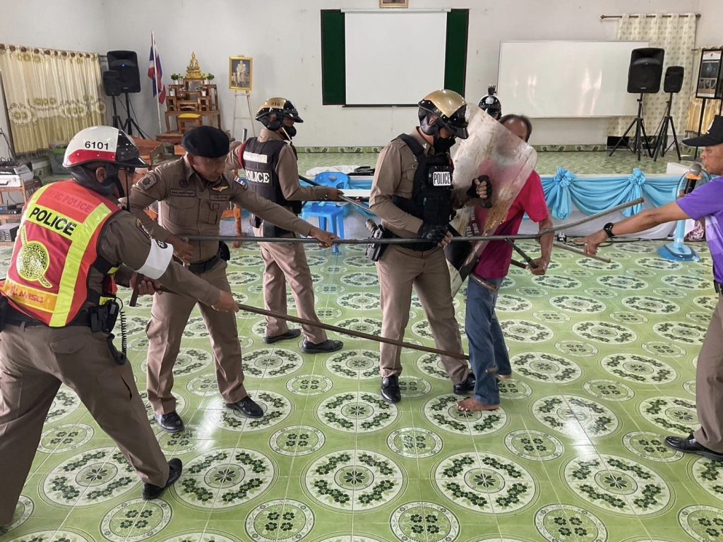 ร.ต.อ.อัฐพงศ์ ขาวแก้ว รอง สว.สส.สภ.เขวาสินรินทร์ ปฏิบัติหน้าที่ รองหัวหน้า ชุด ชมส.เป็นวิทยากร พร้อมด้วย ร้อยเวร20,พลขับ,สายตรวจรถจักรยานยนต์,สายตรวจจราจร สาธิตวิธีการใช้ไม้ง่ามควบคุมบุคคลคุ้มคลั่ง,จิตเวชให้กับผู้นำชุมชน ,อสม.,หมู่ที่3 ต.เขวาสินรินทร์ อ.เขวาสินรินทร์ จ.สุรินทร์ เหตุการณ์เป็นไปด้วยความเรียบร้อย